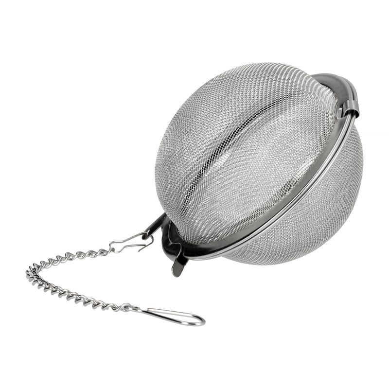Zaparzacz w kształcie kuli wyposażony w praktyczny łańcuszek.